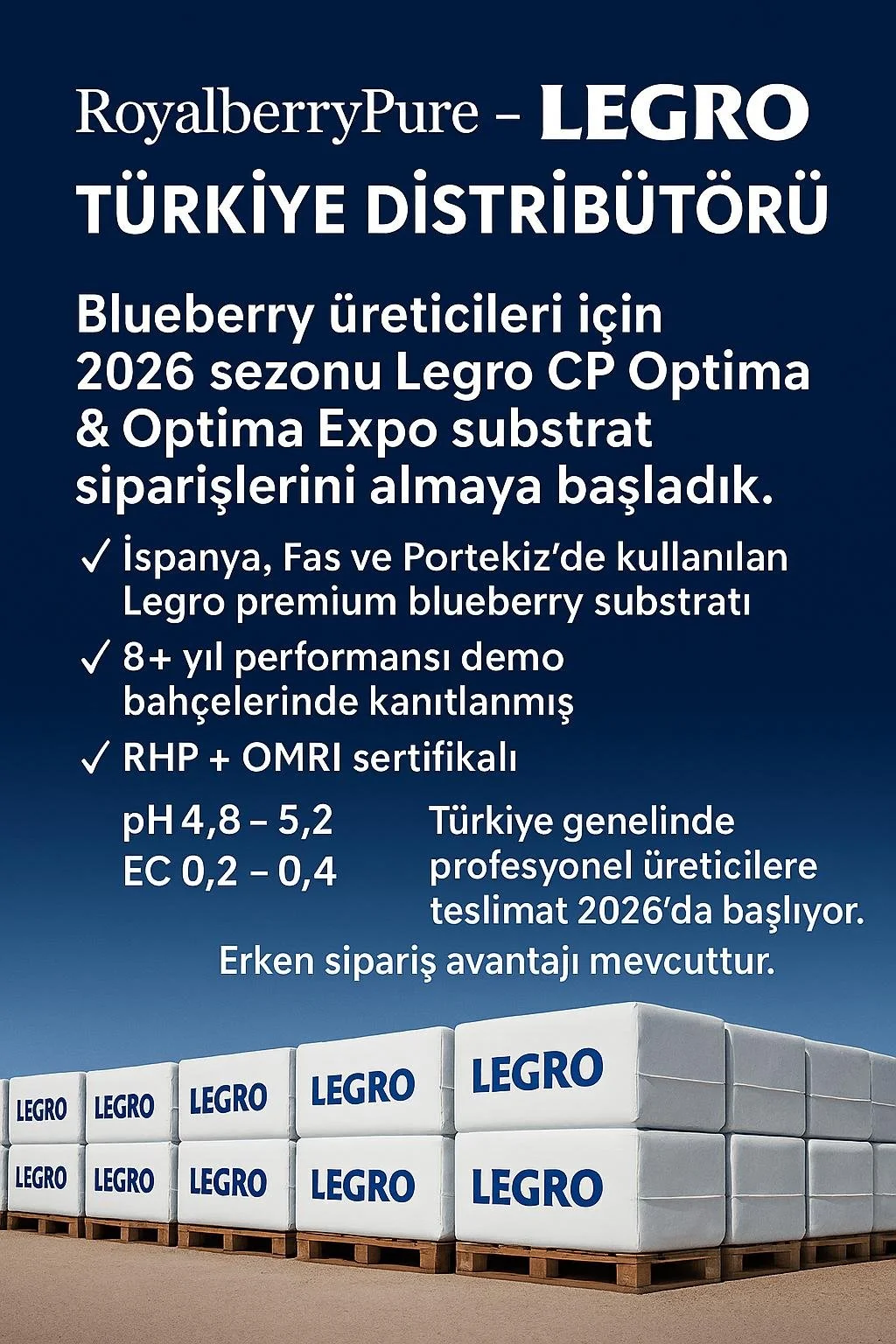 1924 yılından beri hammadde üreten ve 30 yıldır meyve yetiştiriciliği için substrat üreten, uluslararası pazarda lider konumda bulunan Hollandalı "Legro" şirketini temsil ediyoruz.